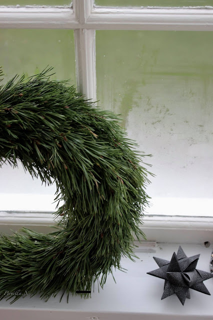 Det binds kransar för fullt här hemma .Kransarna ska säljas men några har även blivit rekvisita vid fotograferingar jag gjort som de här av en och tall . Vackra som de är men det går ju också knyta fast ett vackert band i någon färg som tar upp övriga färger man har i inredningen.
